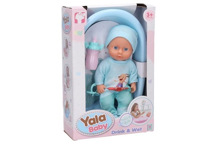 Miminko s vaničkou modré. Velikost miminka 9x5x20cm. Velikost vaničky 27cm. Obsahuje miminko, vaničku, lahvičku na pití a dudlík.