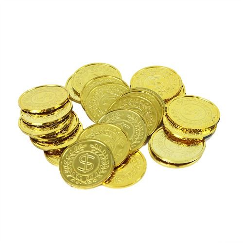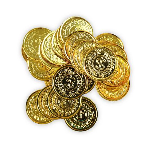 Senzační mince ve zlaté barvě! Tyto parádní kousky jsou vyrobeny z plastu. Balení obsahuje cca 24 mincí.