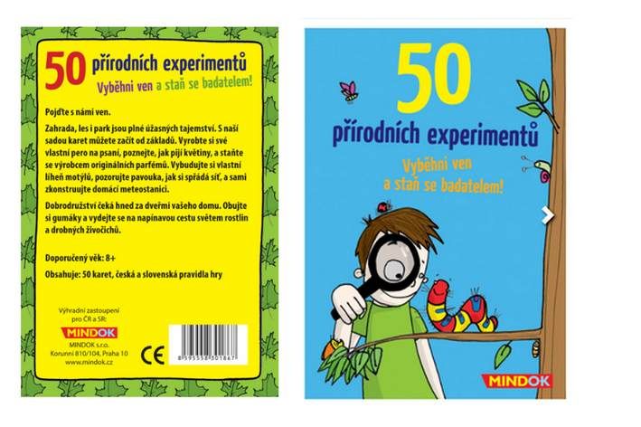 S naší sadou karet můžete začít od základů. Vyrobte si své vlastní pero na psaní, poznejte, jak pijí květiny, a staňte se výrobcem originálních parfémů. Vybudujte si vlastní líheň motýlů, pozorujte pavouka, jak si spřádá síť, a sami zkonstruujte domácí meteostanici. Dobrodružství čeká hned za dveřmi vašeho domu. Obujte si gumáky a vydejte se na napínavou cestu světem rostlin a drobných živočichů.