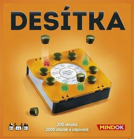 Budete hrát na jistotu, nebo riskovat? Ve hře je 200 okruhů, 2000 otázek a 2000 možných odpovědí. To vše v kompaktním balení zvaném smartbox s počítadly bodů a žetony odpovědí. Desítka je skvělá hra, obzvláště vhodná i na cesty. Hra obsahuje česká pravidla. Obsah balení: smartbox 100 oboustranných karet 10 žetonů odpovědí česká a slovenská pravidla Odkazy pravidla (pdf, česky)