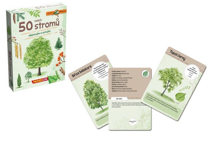 S kartami v této hře zvládnete snadno určit 50 našich listnatých a jehličnatých stromů. Na kartách najdete kvízovou otázku, názornou ilustraci, stručný popis a několik zajímavostí. Ideální průvodce pro všechny milovníky přírody.