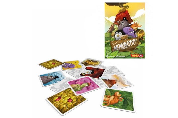 Mindok Memoarrr - dětská hra. Vydejte se spolu se zvířaty za pirátským pokladem na pustý ostrov. Spolehněte se na svoji paměť a trochu pirátského štěstí. Získejte co nejvíce rubínů z pokladu dříve, než je pohltí láva z vybuchující sopky!