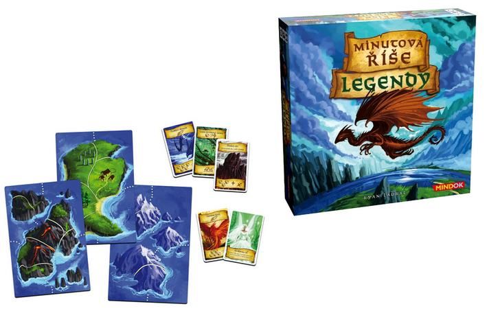 Minutová říše: Legendy je pokračováním slavné hry Minutová říše. Nejedná se o rozšíření, ale o samostatnou hru. Stejně jako v původní hře získávají hráči jednotlivé karty, které jim umožní nasazení a pohyb armád či stavbu měst.Tentokrát se hraje na herním plánu, který bude v každé hře jiný, každá získaná karta vám přinese nové možnosti a do hry lze postupně přidávat nové zajímavé varianty. To vše se odehrává ve fantasy světě ztvárněném nádhernými ilustracemi.Minutová říše: Legendy je mimořádně rychlá hra vyžadující promyšlená rozhodnutí, ideální, pokud se nechcete učit složitá pravidla, nebo pokud máte na hraní jen pár minut.Balení obsahuje 4 sady dřevěných hracích kamenů v barvách hráčů, každá obsahující 18 armád (kostičky) a 3 města (hrady),4 segmenty hracího plánu,43 karet,36 mincí,3 žetony citadel,5 žetonů objevů,4 žetony setkání,1 žeton jedovatý močál,1 žeton startovního regionu,pravidla hry.Doba trvání hry cca 15 min,pro 2-4 hráče.Věk 12+