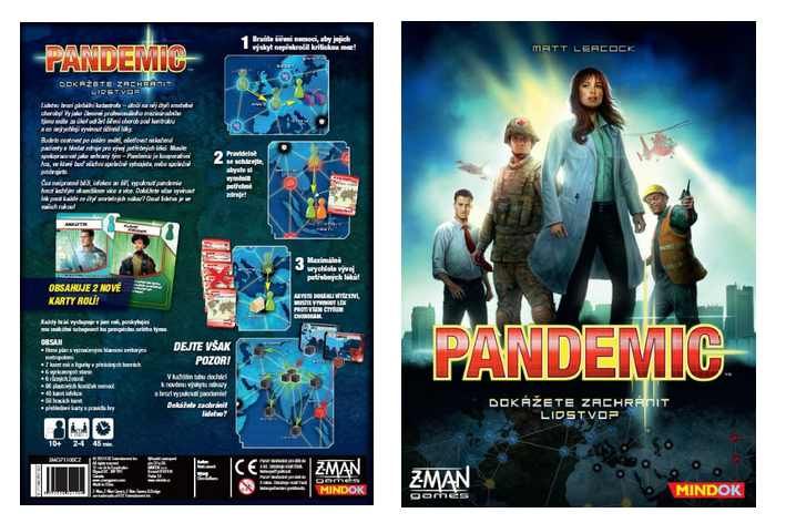 Hra Pandemic nám představuje neotřelý herní mechanizmus, kdy hráči v rolích odborníků spolu musí spolupracovat, aby porazili hru samatnou. Ať už se stanete výzkumníkem, vědcem, operačním expertem, medikem nebo dispečerem, úkol zůstává. Musíte využít svých speciálních vlastnostní ve prospěch týmu a zamezit tak šíření pandemie. Cestujte po světě a likvidujte zárodky epiedemie, zakládejte výzkumné stanice a vynalézejte léky. Čas běží a osud lisdstava je ve vašich rukou. V Pandemicu vítězí jen sehraný tým.