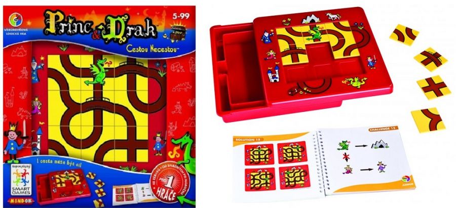 Poskládejte 9 herních dílků tak, aby všechny cesty vedly správným směrem a propojily některé obrázky na herním plánu. Ale pozor: Jiné obrázky zase nesmí být propojeny! A není to rozhodně tak jednoduché, jak to na první pohled vypadá – část cesty vede po herním plánu mimo herní dílky a jednu z křižovatek hlídá nezbepečný drak! Tato hra nabízí dětem i dospělým 1001 možností.