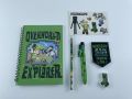 Set obsahuje A5 blok, obyčejnou tužku, gumu, set samolepek, poznámkový bloček a barevné pero.