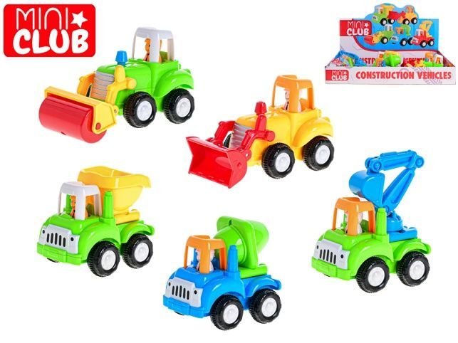 Toto stavební autíčko nesmí chybět na žádném staveništi. Malé autíčko je z kolekce Mini Club. Autičko je na setrvačník. Rozměry staveního auta jsou 9-14 cm. K dispozici 5 druhů - bagr, válec, domíchávač, sklápěčka a rypadlo. Vhodné pro děti od 18 měsíců.