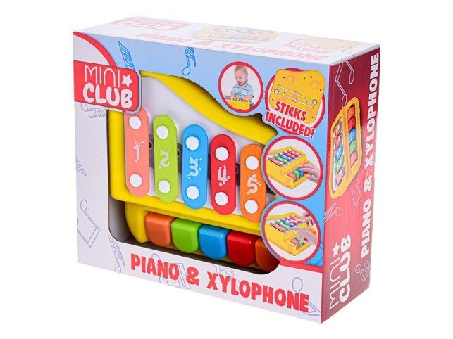 Pianko s xylofonem hraje různé melodie. Je to ideální hračka pro malé muzikanty. Hračka rozvíjí sluchové vnímání dítěte. Pianko má velikost 18x18 cm. Vhodné pro děti od 18 měsíců.