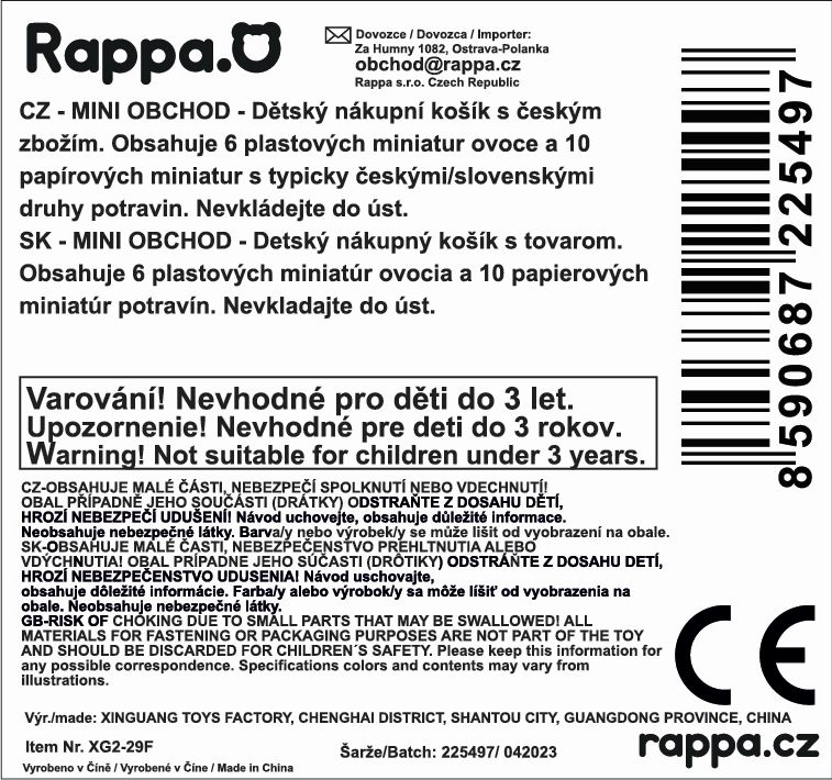 Hra na obchod patří k oblíbeným dětským kratochvílím, a tak výběrem tohoto doplňku jistě nesáhnete vedle! Přináší spoustu zábavy a zároveň podporuje rozvoj dětské představivosti. V našem nákupním košíku najdeš 10 ks papírových atrap potravin českého zboží a 6 ks ovoce. Navíc uvnitř balení najdeš A4 list s úkoly a ceníkem. Tak popadní dětský nákupní košík do ruky a hurá na nákupy! Na speciální podstránce rappa.cz/miniobchod si zákazníci mohou navíc ZDARMA stáhnout další miniatury potravin a vytisknout naučné úkoly o nakupování.