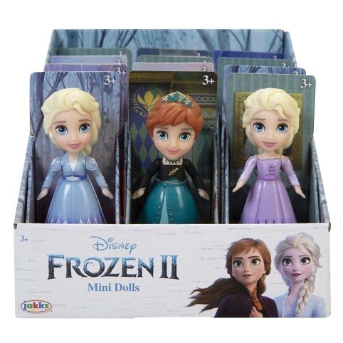 Mini Panenky 8 cm Ledové království 2 – Elsa a Anna v různém oblečení.