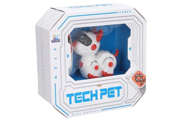 Mini pes RC na dálkové ovládání. Rozměry 5,5x9,5x10 cm. Infračervený port. Světelné a zvukové efekty. 4xAG13 baterie do psa součástí, 2xAAA do ovladače není součástí. Ovladač - ON/OFF tlačítko, programovací tlačítko, chůze všemi směry.