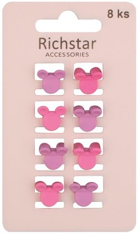 Mini skřipce do vlasů s motivem myšky Skřipce jsou vhodné pro malé i větší parádnice. Krásně oživí každý účes. Osm kusů v balení, dvě barvy mixem.