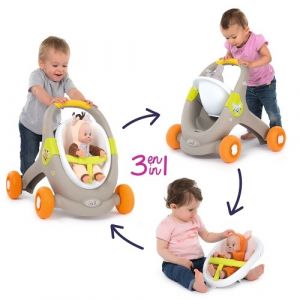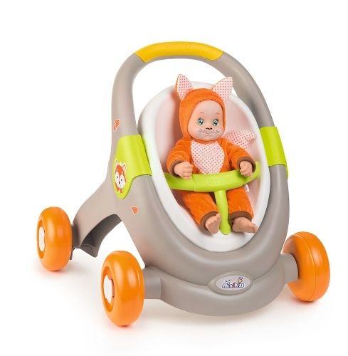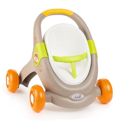 Chodítko v hnědém provedení z kvalitního plastu z řady Minikiss pro holčičky pomáhá nejen při prvních krůčcích, ale může být použito i jako kočárek nebo sedačka pro panenku. Kolečka jdou zaaretovat. Panenka není součástí. Rozměry: 50 x 45 x 47 cm (DxHxV).
