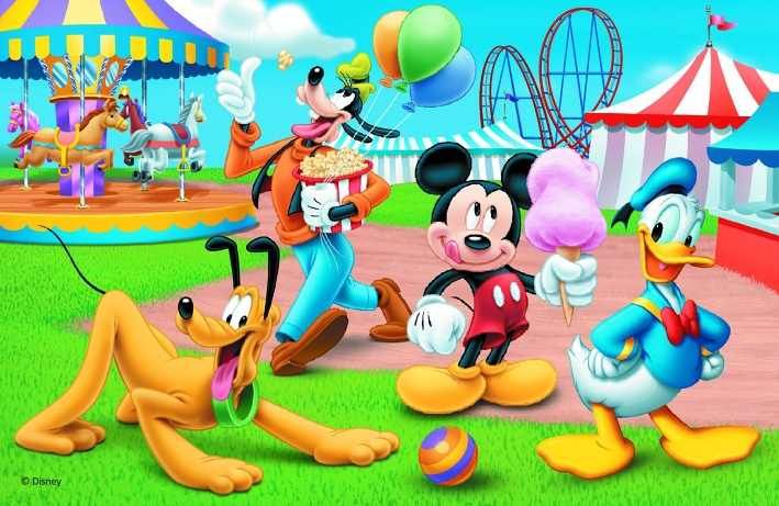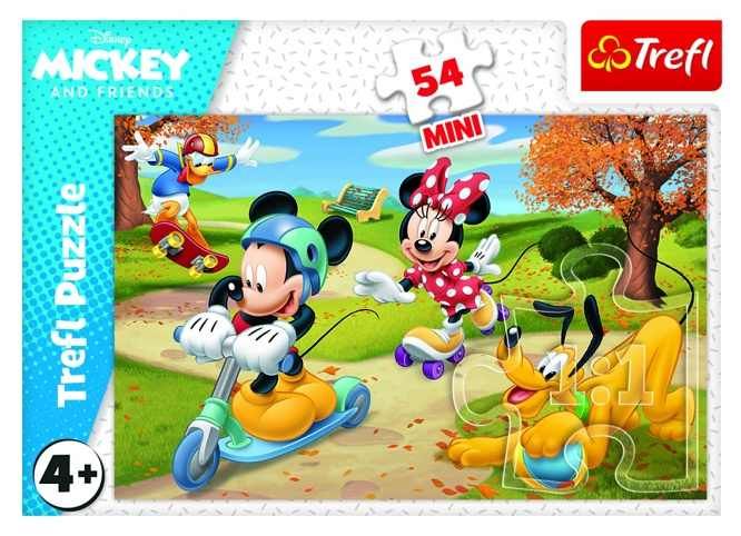 Minipuzzle 54 dílků Mickey Mouse Disney/ Den s přáteli 4 druhy v krabičce 9x6,5x4cm