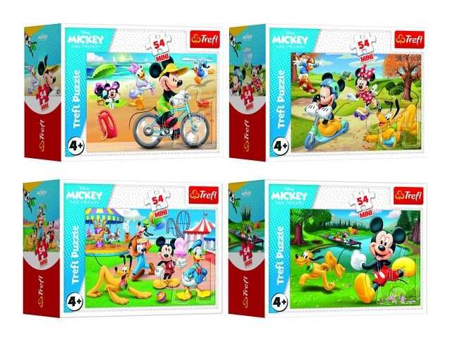 Minipuzzle 54 dílků Mickey Mouse Disney/ Den s přáteli 4 druhy v krabičce 9x6,5x4cm