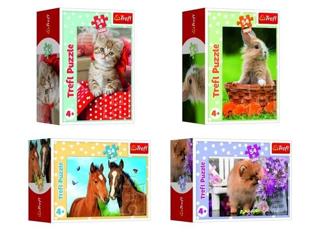 Minipuzzle 54 dílků Zvířátka - mláďata 4 druhy v krabičce 9x6,5x4cm 40ks v boxu
