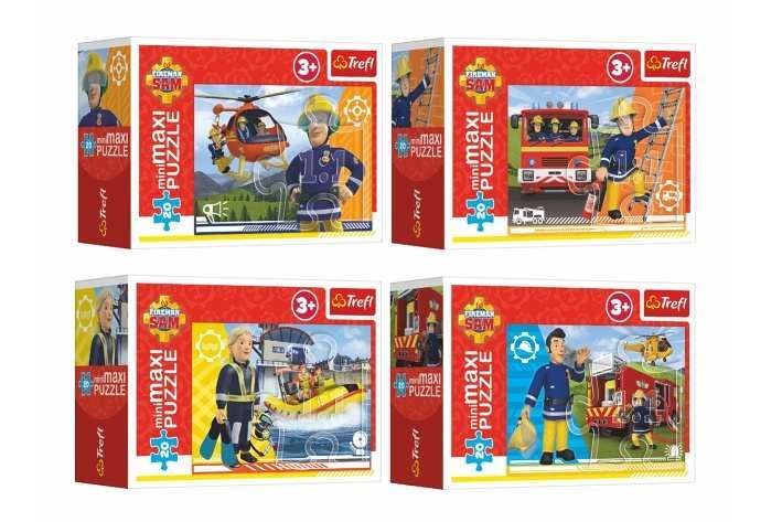 Minipuzzle miniMAXI 20 dílků Hrdinský Požárnik Sam 4 druhy v krabičce 11x8x4cm