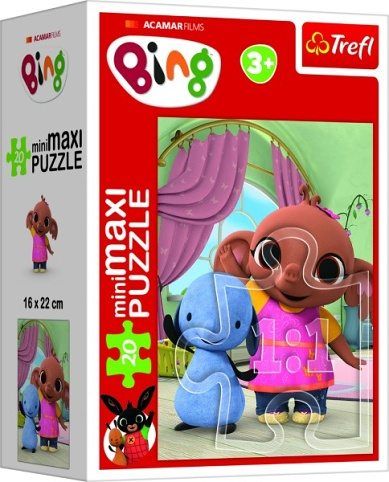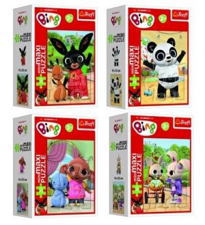 Poskládajte si puzzle s motivem oblíbené seriálu Bing. Můžete si vybrat ze čtyř druhů motivu. Puzzle obsahuje 20 Maxi dílků. Puzzle rozvíjí dětské schopnosti a cvičí šikovnost. Velikost složeného obrázku je 16 x 22cm.