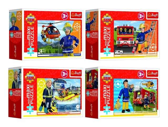 Minipuzzle miniMAXI 20 dílků Hrdinský Požárnik Sam 4 druhy v krabičce 11x8x4cm