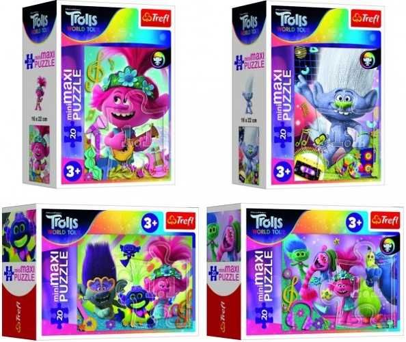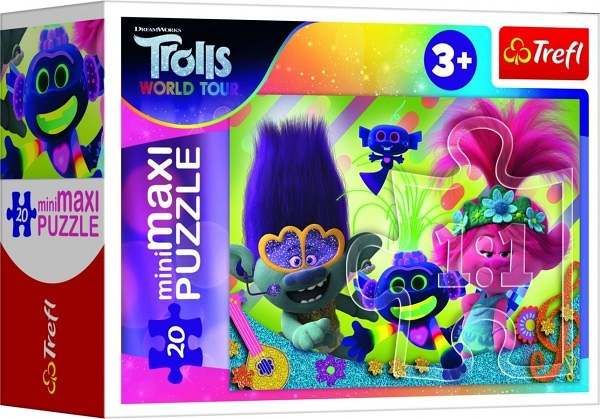 Minipuzzle miniMaxi 20 dílků V hudebním světě Trollů v krabičce 11x8x4cm