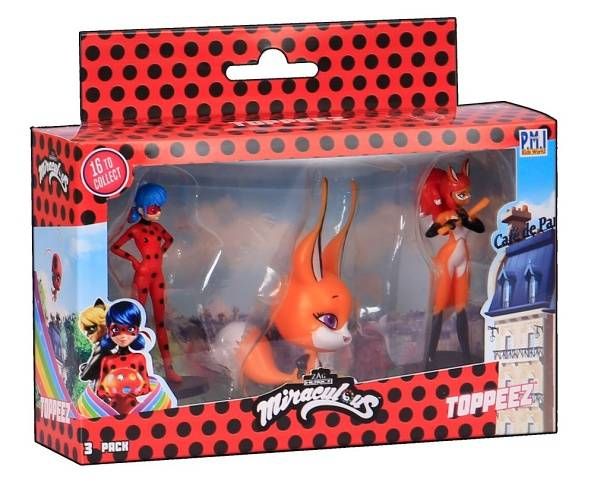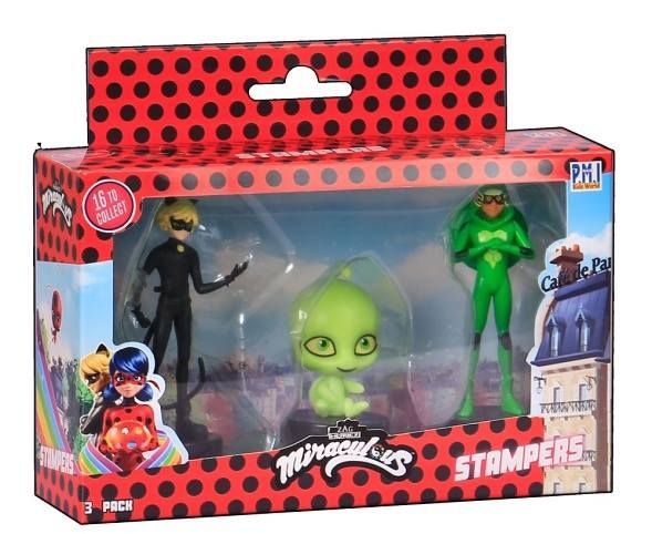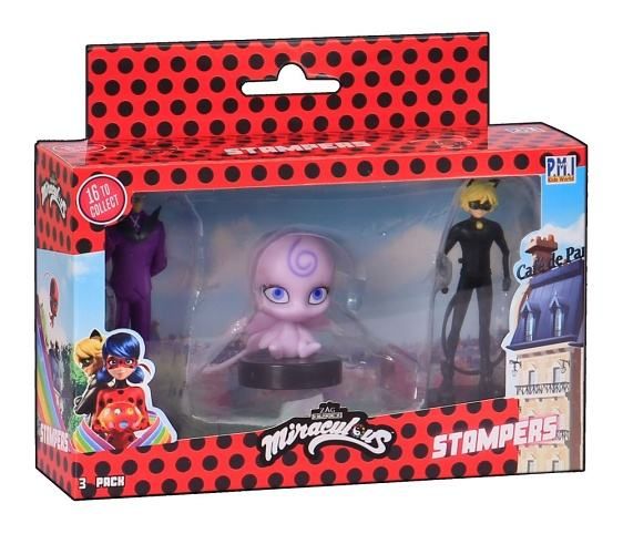 Tři kouzelné figurky z pohádky Miraculous: Beruška a černý kocour s razítky. Tyto figurky mají ve spodní části razítka, takže děti si mohou ozdobit školní práce, vytvořit nové obrázky a další. Vhodné pro děti od 3 let.