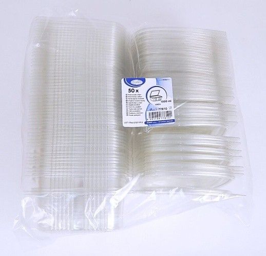 Miska 1000ml čirá hranatá s víčkem 50ks/77610