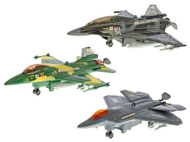 Mission Control stíhačka vojenská 27cm na baterie se světlem na provázku létající 3druhy v