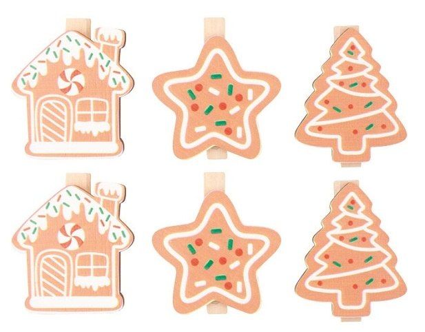 Mix dřevěných vánočních motivů na kolíčku cca 3 x 4 x 0,3 cm, 6 ks v sáčku
