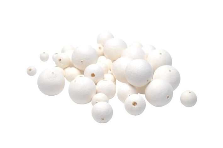 Mix lehkých vatových kuliček různých velikostí s dírkou skrz.