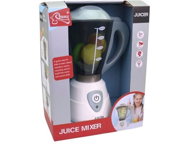 Mixer na baterie s ovocem. Skvělý doplněk do každé správné kuchyně. Udělejte si džus plný vitamínů. Po vložení baterií do mixéru vydává zvuk mixování. Rozměr balení 19 x 25 x 11 cm. Baterie 2 x AA 1,5 V nejsou součástí balení. Materiál: plast. Doporučený věk: 3+.