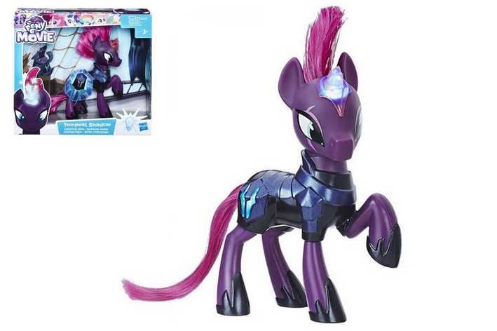 Představte si dobrodružství inspirované filmem s temnou zářivou Bouří. Stiskněte znaménko osodu a poník Bouře se rozsvítí modře stejně jako její roh! Předstírej, že jsi na zuřivé misi, která má zachytit Twilight Sparkle, Pinkie Pie, Rainbow Dash, Fluttershy, Rarity, Applejack se Spikem, ovládni Equestrii a uzdrav její roh.