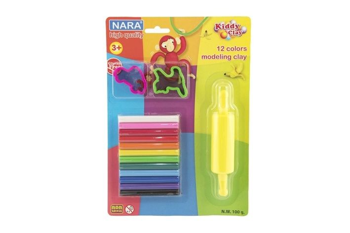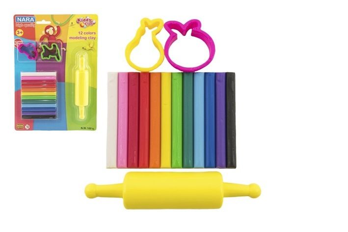 Modelína/Plastelína Nara 100g 12ks s vykrajovátky 2ks s válečkem na kartě 18,5x26cm