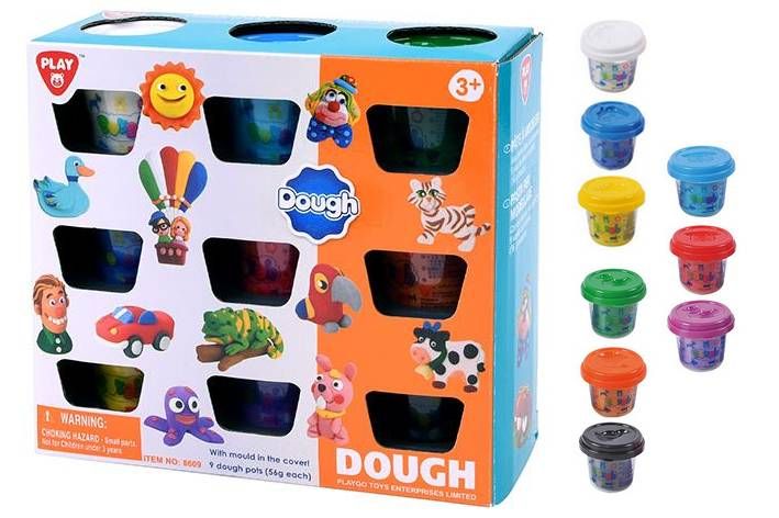 Sada obsahuje 9 kelímku s modelínou (56g v každém kelímku). Každý kelímek má na víčku tvořítko.