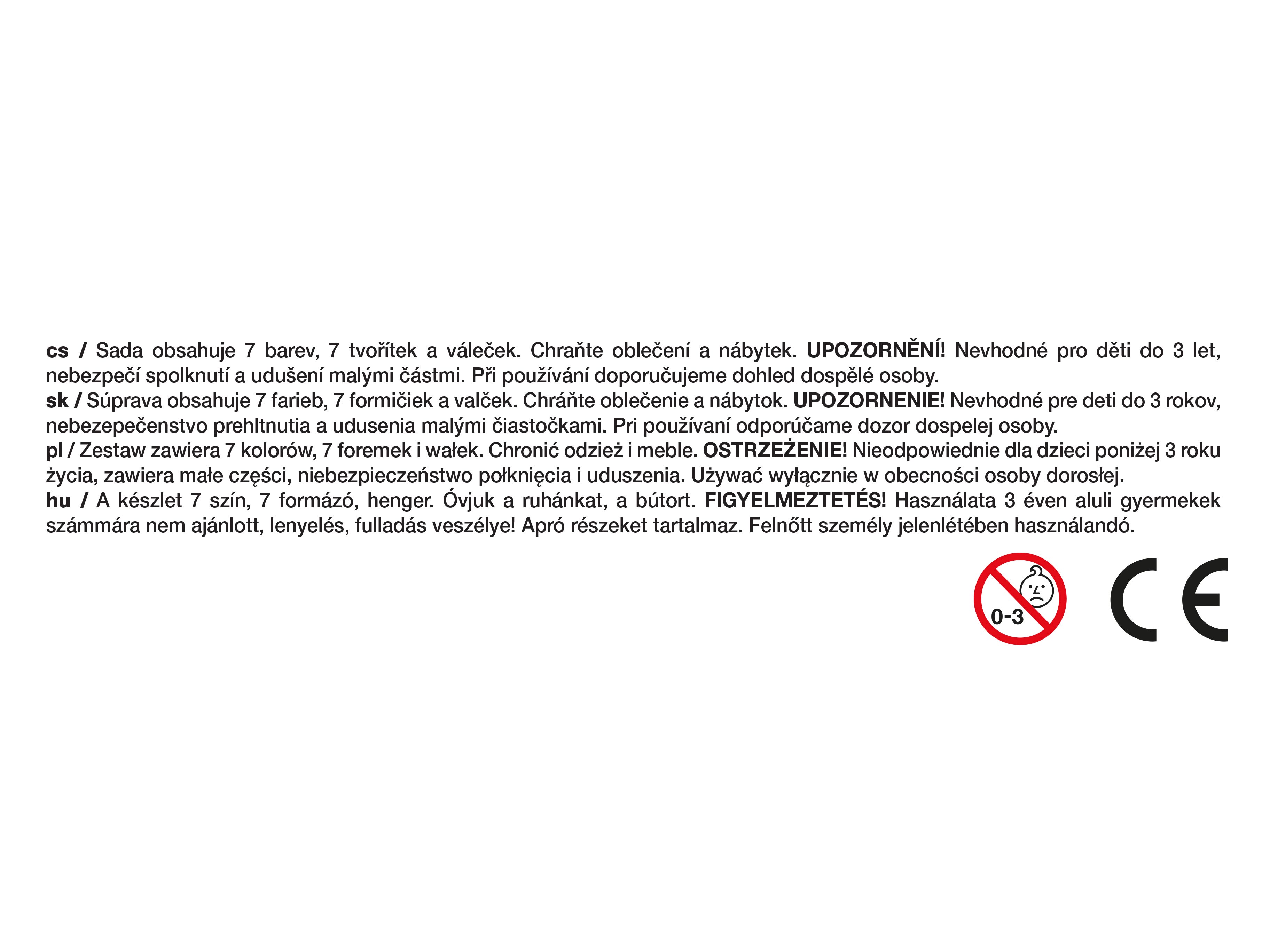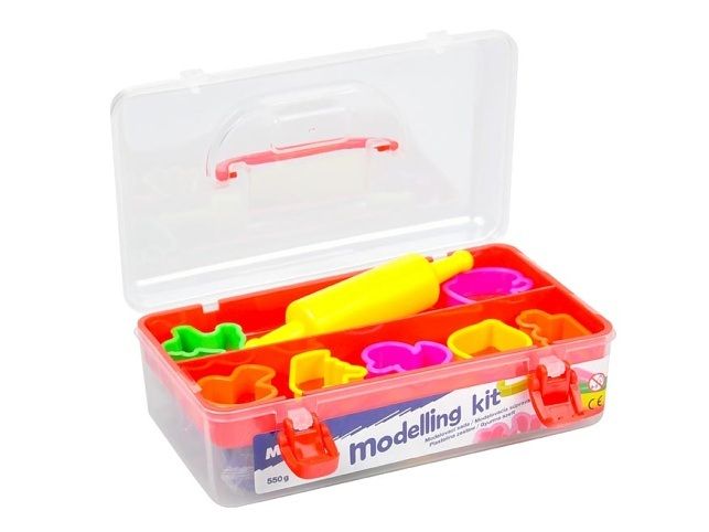 Modelovací hmota 7 barev 550g +7 tvořítek, váleček