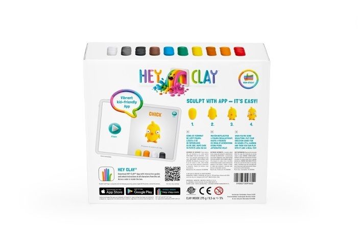 Z modelovací hmoty HEY CLAY si děti mohou vytvořit nepřeberné množství různých postaviček, zvířátek nebo oblíbených hrdinů. Po vymodelování je důležité nechat modely na vzduchu dostatečně zatvrdnout a tím okamžikem se mohou stát součástí dalších her a zábavy. Lze si tak jednoduše vytvořit vlastní figurky a postavičky, nebo schovat Hay Clay opět do kelímku pro další tvorbu. S mobilní aplikací Hey Clay (iOS, Android), kterou si zdarma stáhnete, a která nabídne dětem další možnosti rozvíjení fantazie, barev a kouzlení s vytvářením nových postaviček – kód v hodnotě 5USD pro otevření aplikace, najdete v každém balení Sada Hey Clay obsahuje 18 nádobek s měkkou, jemnou a voňavou modelínou a přístupový kód do aplikace pro zakoupenou řadu. Barvy nacházející se v balení Vám umožní vytvořit 6 postaviček.