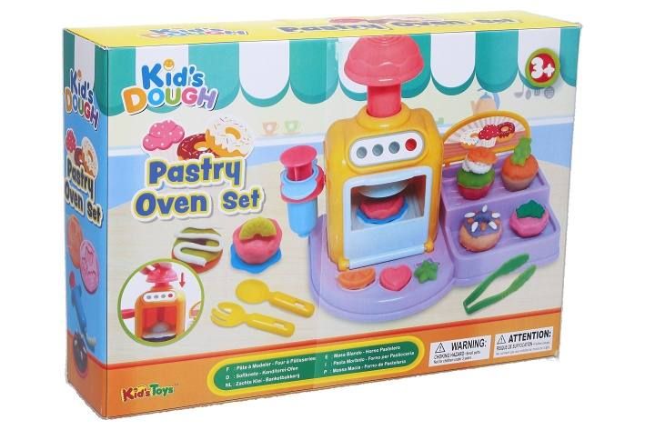 Modelovací hmota Pekárna na cukroví výtvarný set. Obsah balení - pec na cukroví s formičkami na přísady, výstavní pultík na cukroví, dávkovač a tvarovací nástroje, 4x56g kelímky modelovací hmoty (žlutá, béžová, oranžová, růžová). Obrázkový návod na používání pece se nachází na zadní straně obalu. Návod na míchání barev na zadní straně obalu.