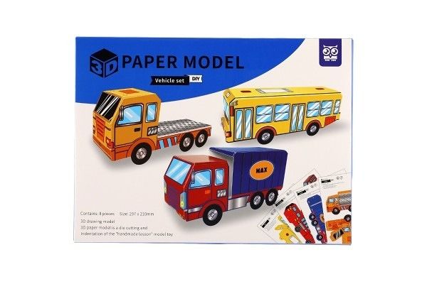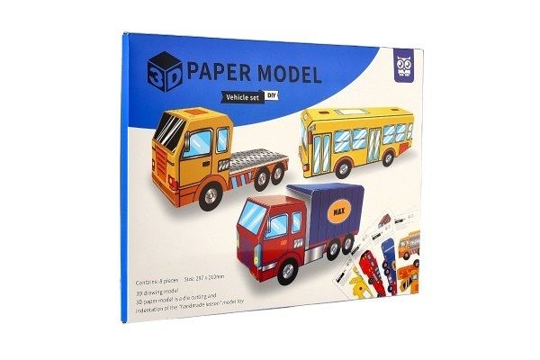 Při sestavování papírových 3D modelů si děti procvičí smysl pro prostor, kreativitu i představivost. Předlohy jsou vysekány do pevného papíru, nejsou tak potřeba nůžky. V papírových deskách najdete 8 ks předloh dopravních prostředků.