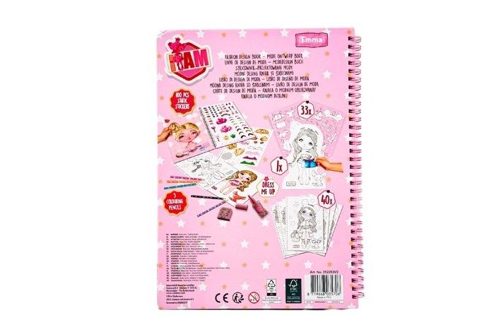 Módní designová kniha I am – vám dovolí obléct nebo udělat make up svým panenkám dle vašich představ a vaší kreativity. Můžete vybírat ze třech různých panenek – Emi, Mona a Emma, každá kniha obsahuje jiné příslušenství – samolepky, tužky, gumu, lepidlo, pastelky …