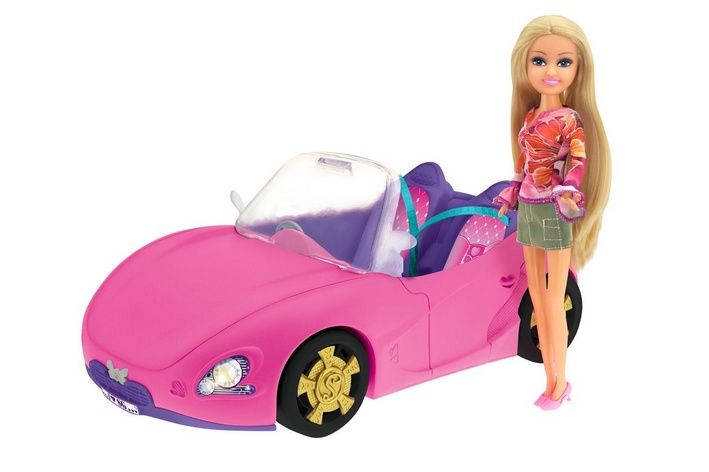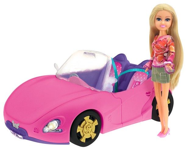 Panenka Sparkle Girlz ve sportovním růžovém autě. Ozdob si svůj sportovní kabriolet.
