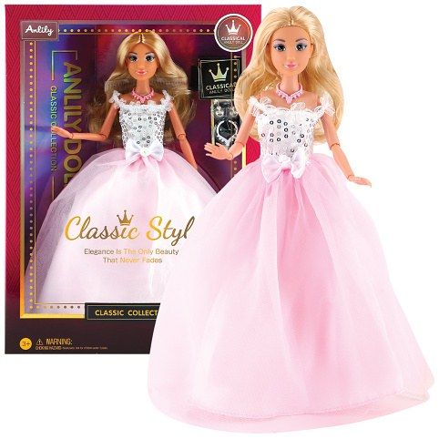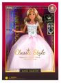 Módní panenka ve společenských šatech - dlouhé růžovobílé