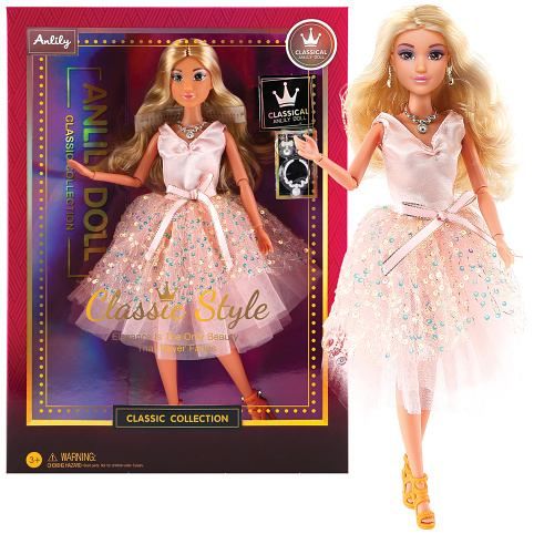 Módní panenka ve společenských šatech - krátké sv. růžové