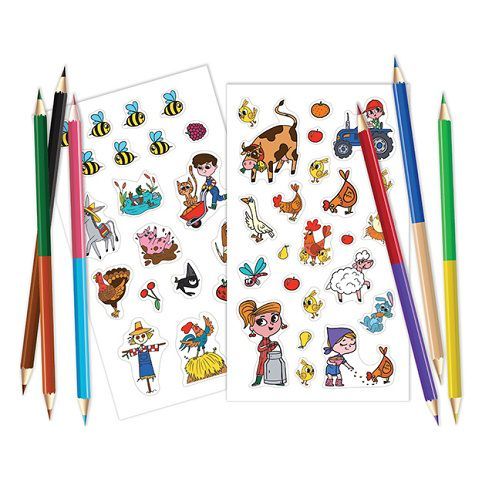 Omalovánky obsahují 96 stran nejrůznějších aktivit, 2 listy samolepek a 6 oboustranných pastelek. To vše v praktickém balení na cesty.