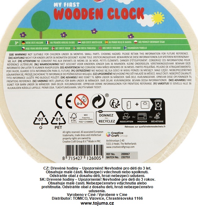 Nádherné dřevěné dětské hodiny o průměru 14 cm, s touto šikovnou pomůckou se děti naučí poznávat čas na ručičkových hodnikách lusknutím prstu, barevně označené číslice i ručičky, uprostřed ciferníku je krásný obrázek koníka s kačerem