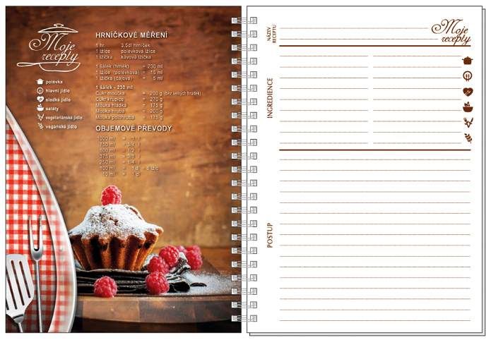 -Stylový sešit pro Vaše oblíbené recepty v jednoduché a praktické knižní vazbě.