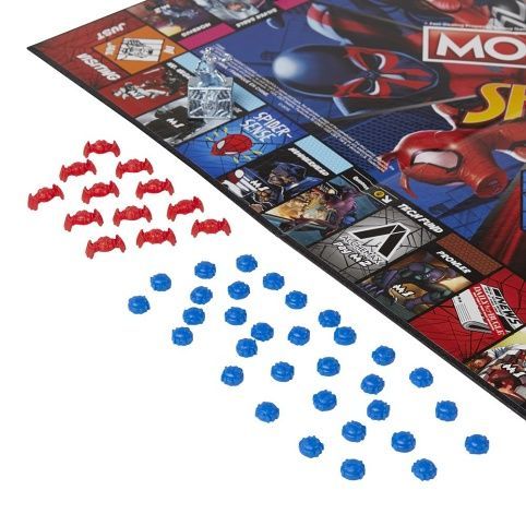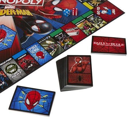 Ponořte se do Spider-verse s touto vzrušující edicí hry Monopoly! Zachraňte den: Pusťte se do akce a chraňte New York City před super padouchy! Hrdinové Spider-Verse: Hrajte za jednoho ze 6 úžasných hrdinů z celé Spider-Verse. Jedinečná schopnost: Každá postava má během hraní své vlastní jedinečné schopnosti. Získejte super padouchy místo vlastností: Hráči se budou „houpat“ po hrací ploše a „webovat“ co nejvíce super padouchů. Spider Tracers: Spider tracery a Spider boti nahrazují domy a hotely. Karty mohou změnit hru: Karty Spider sense a Daily Bugle vytvoří pro všechny hrdiny nepředvídatelné výzvy.