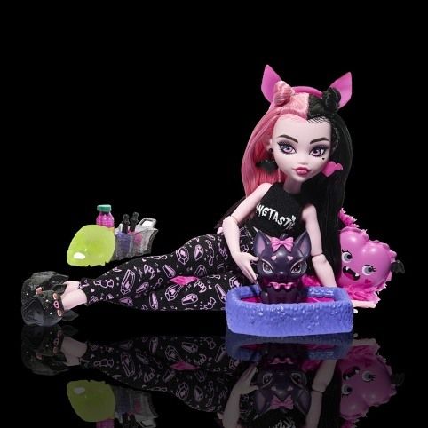 Samozřejmě, že na každé přespávačce se holky parádí a převlékají… ale když k tomu přidáte knihy kouzel a lak na drápy, je to opravdu strašidelný večírek! Monster High™ představuje Creepover Party™, kolekci panenek příšerek s tematickými doplňky, které inspirují k vyprávění příběhů a děsuplným módním hrátkám. Každá panenka Monster High™ přichází s neotřelým vzhledem, nezbytnostmi pro přespání a domácím mazlíčkem. Každá se prodává samostatně v závislosti na dostupnosti. Panenka je plně kloubová. Panenka nemůže stát samostatně. Barvy a provedení se mohou lišit.