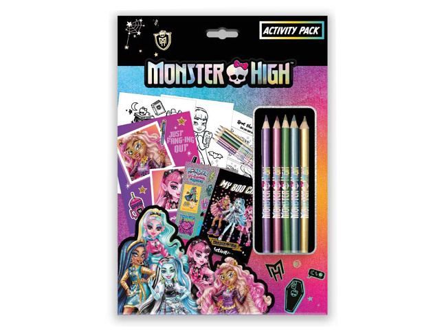 Monster High omalovánky s pastelkami metalických barev + nálepky na kartě