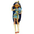 Škola je opět v plném proudu a lehce přízrační studenti z Monster High™ dokáží dát školní uniformě pěkně na frak! Cleo De Nile™ se prochází po chodbách Monster High™ jako královna v safírově modrých šatech s rukávy v módní stylu mumie. Elegantní silueta j