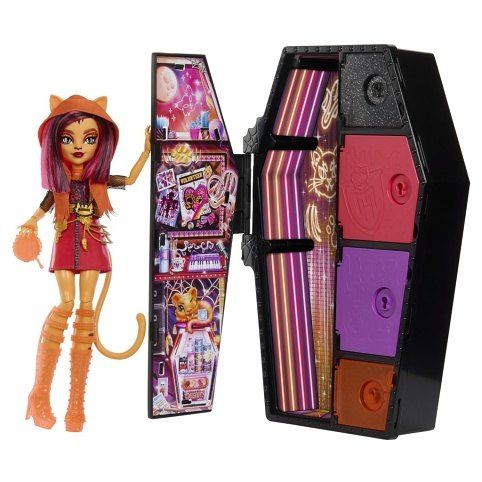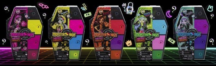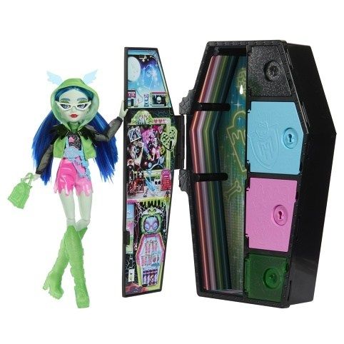 Monster High™ Skulltimate Secrets™ se vrací s edicí Neon – a tentokrát je světélkující! Každý elektrizující set obsahuje panenku Monster High™ s více než 19 překvápky, včetně tří doplňků, které svítí ve tmě. Kouzlo přeměny barvy Color Reveal™, strašidelné rozbalování a skříňka ve tvaru rakve, která je ideální pro vyprávění příběhů a uložení panenky. Každá se prodává samostatně v závislosti na dostupnosti. Panenky jsou zcela kloubové. Panenky nemohou stát samostatně. Barvy a provedení se mohou lišit.
