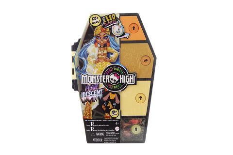 Kdo se rád bojí a kdo miluje napětí ten musí milovat i pořádná překvapení! Panenky z řady Monster High™ Skulltimate Secrets™ přichází v nové edici a nabízejí při rozbalování to nejnapínavější očekávání korunované monstrózním překvapením! V každém boxu, který má ikonický tvar rakve, čeká tajemná Monster High™ panenka a balíčky s více než 21 překvapeními! Technologie Color Reveal™ postupně odhalí identitu monsterky a balíčky plné překvapení dodají stylové i tematické oblečky i cool doplňky. Ohebné klouby každé panenky i originální vzhled nahrávají nekonečným možnostem dětské fantazie. Panenky se prodávají samostatně v závislosti na dostupnosti. Panenky nemůžou stát samostatně. Barvy a provedení se mohou lišit. Věk 4+